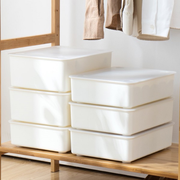 如果家里的衣柜沒有足夠的抽屜,可以選擇塑料的收納盒,帶蓋防塵,還可以疊加放置,充分利用縱向空間。