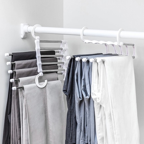 同理,褲子也可以采用疊掛的方法進(jìn)行收納。