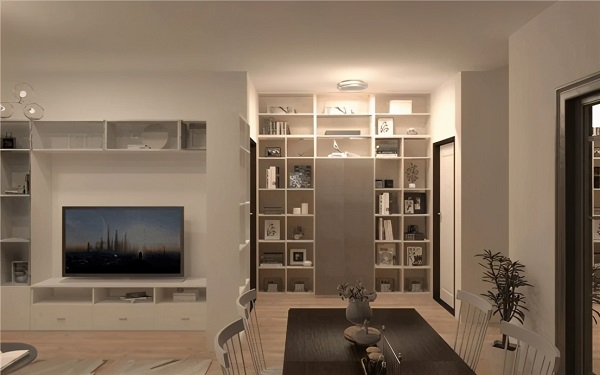 封閉式收納柜整體顯得整齊、清爽、簡(jiǎn)潔,讓客廳的空間更有質(zhì)感,讓室內(nèi)活動(dòng)空間大。