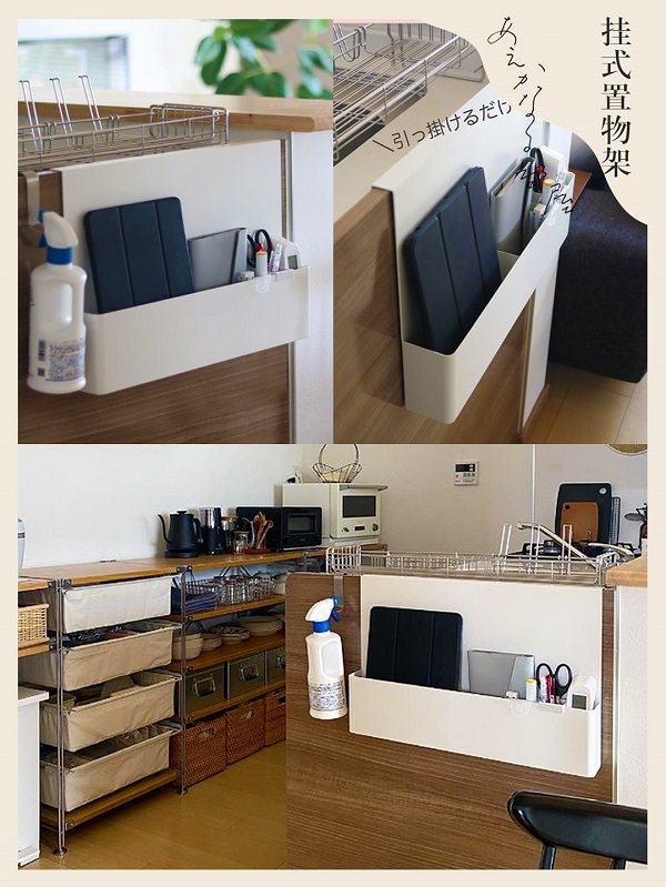 扁平形的置物架,可以掛在櫥柜門或餐邊柜,擴(kuò)展收納功能,放一些常用的小工具、食譜、平板電腦等,不占臺(tái)面空間,隨手就能拿到。