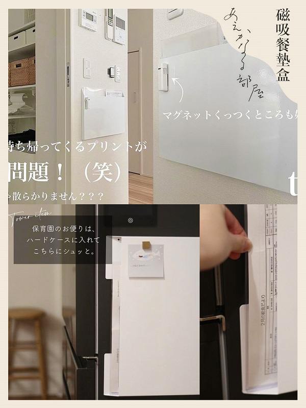 如果你有把菜譜或餐墊放在冰箱周圍的習(xí)慣,那這個(gè)最合適不過(guò),磁吸設(shè)計(jì)放上就能用。也可以安裝在墻上收納一些傳單,造型很輕薄,不會(huì)給空間帶來(lái)壓迫感。