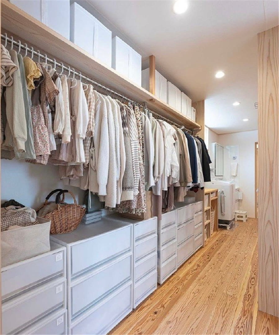 其次,衣柜內盡量多地增加掛置區(qū)域,減少疊放區(qū)域,因為這樣收納不僅清晰明了,拿放也方便很多,給收納減輕負擔,也有助于養(yǎng)成隨拿隨放的收納習慣。