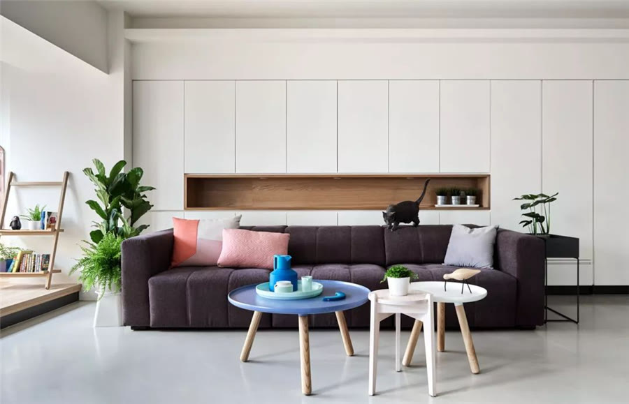 比如用隔板架代替沙發(fā)背景墻、用整體的柜子代替電視墻,這些增加收納空間的做法現在都非常常見,而且也很實用。