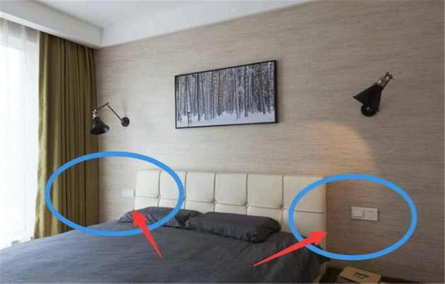 臥室,主要的插座位置就是床頭的左右兩側(cè),各安裝2個(gè)插座,用來(lái)給手機(jī)充電、為臺(tái)燈供電。