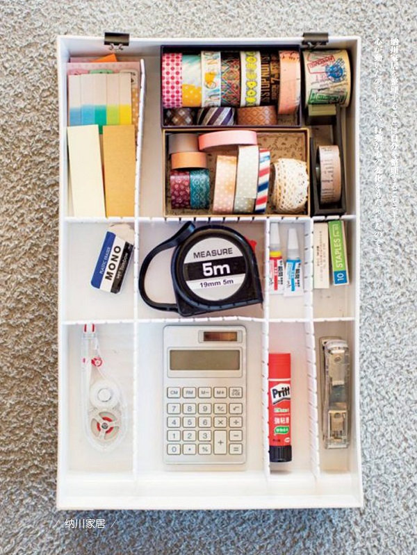 較大的抽屜或收納盒,可以加裝分隔板,按類型劃分內(nèi)部空間,便能毫無(wú)壓力地放入和取出小工具。