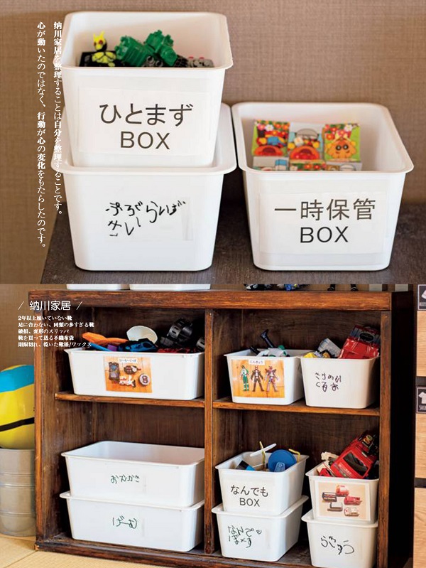 要讓家人養(yǎng)成自己整理的習(xí)慣,在收納箱上貼上名字,每個(gè)人使用固定的位置存放文具等小工具,位置不夠時(shí)便各自清理自己的物品。