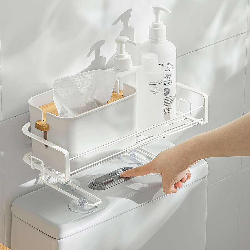 浴室臺面空間有限,堆滿物品潮濕難清潔。納川馬桶置物架,可放于馬桶水箱上,收納各類浴室用品。真空吸盤固定,即裝即用。加高支架,不遮擋水箱按鈕,適用于市面上大多數(shù)馬桶。鏤空設(shè)計,瀝水透氣。大容量置物區(qū),洗浴瓶罐輕松收納,雙側(cè)掛鉤延展收納,吊掛小物瀝水風(fēng)干,洗浴用品取用便捷。