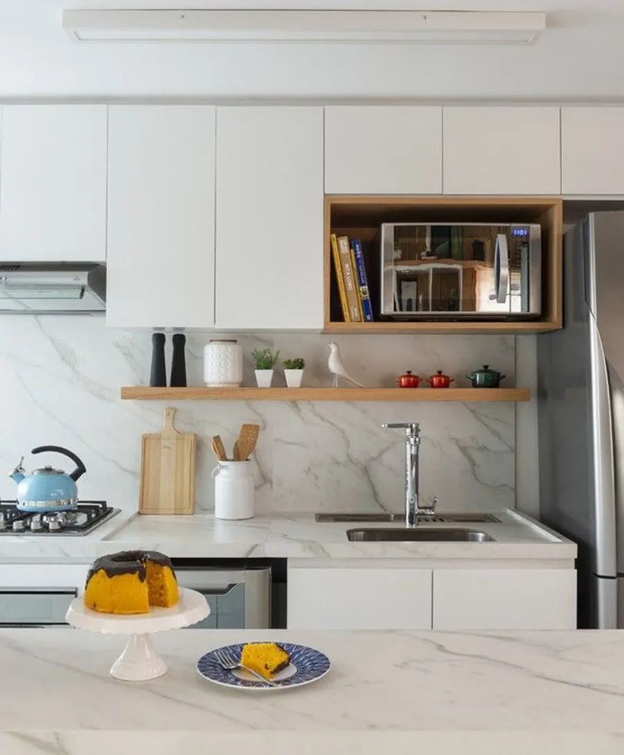 可以減少對臺面的占用,讓整個廚房更加的清爽。但同樣的,要考慮清楚,電源的預留、墻面是否是承重墻以及電器的透氣問題等等,別盲目選擇。
