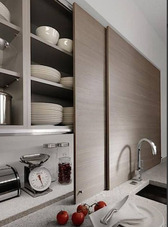 看完第一種,你們可能要說,我這是不當家不知清潔難啊。那行,那就做成封閉式收納的。內(nèi)嵌式置物,既不會延伸出來妨礙到洗菜區(qū),也能更加地美觀。但要求,墻面一定得是非承重墻,否則是做不了解的。