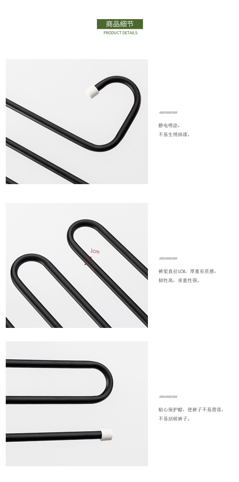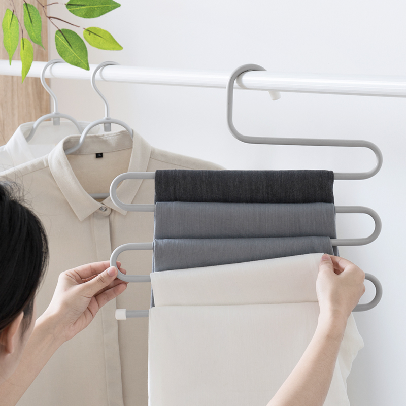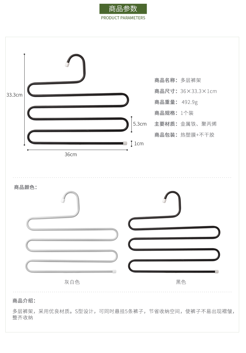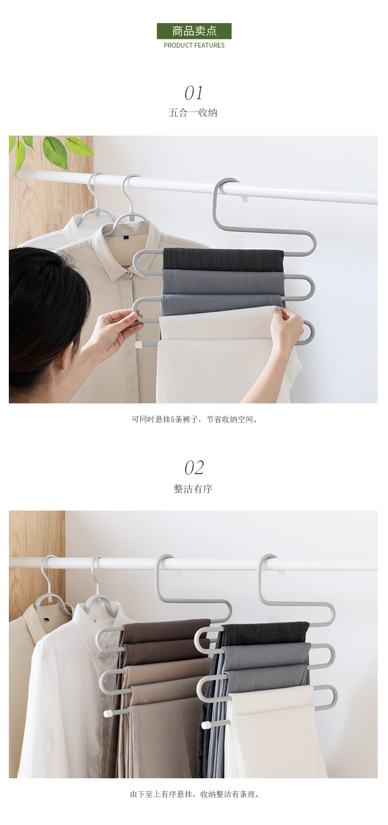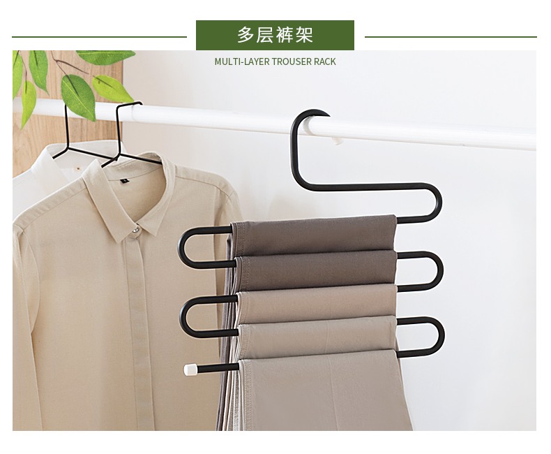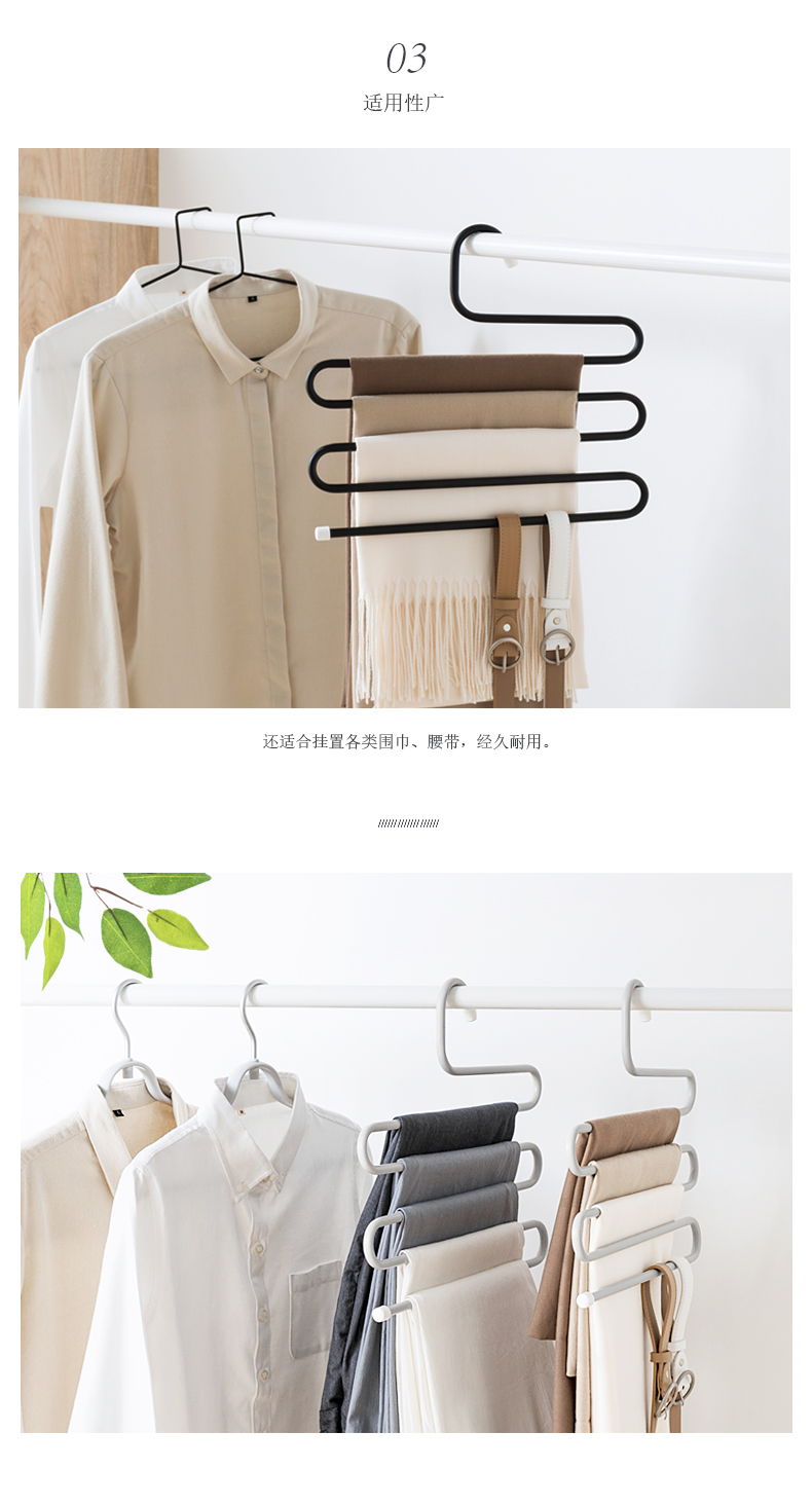 1、五合一收納:可同時掛5條褲子,節(jié)省收納空間