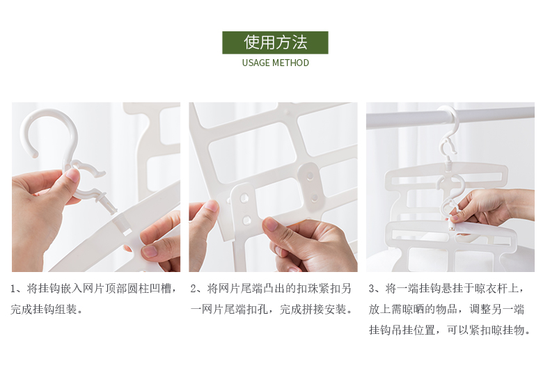 1、自主調(diào)節(jié):根據(jù)需求調(diào)整掛鉤位,緊抓晾曬物