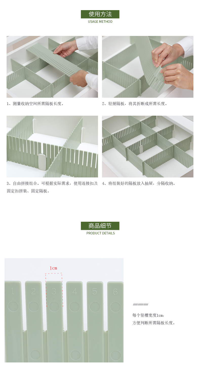 4、每個豎槽:寬度1cm,方便判斷所需隔板長度